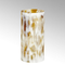 Aus sogenanntem Studioglas wird die Pesaro Vase mundgeblasen. Das Glas wird mit einer opaken, weißen Glasschicht überfangen und spielerisch unregelmäßig von Hand ausgeschliffen, so dass ein besonderer Farbeffekt entsteht. Bei Kerzenlicht schimmert der Bernsteinton warm. Pesaro sollte von Hand gespült werden. In der Spülmaschine kann es zu sogenannten Kühlsprüngen kommen.