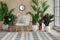 Vier stabile Stuhlbeine aus Metall geben dem Stuhl stabilen Stand. Die Beine wurden in Holz-Optik veredelt, sodass sie optisch gut mit dem Stoffbezug harmonieren.